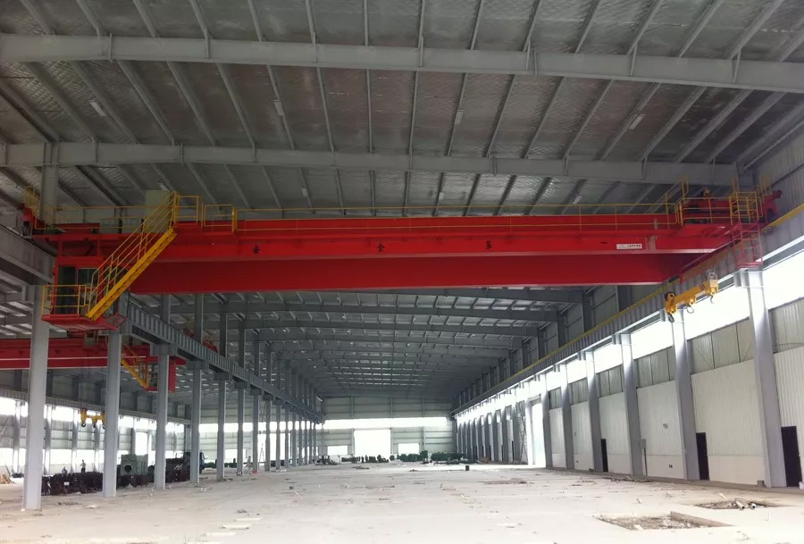 产品介绍:吊钩桥式起重机是目前应用较为广泛的起重机械,其主要由箱形桥架、起重小车、大车运行机构和电气控制系统组成。取物装置是吊钩。主梁上面铺设有轨道,供起重小车沿主梁方向作横向移动。主梁与箱型端梁焊接而成,端梁中间布置有接头,螺栓或销轴连接,供桥架分拆运输。操作方式设有地面手柄、无线遥控和司机室三种操作形式。驾驶室有开式、闭式两种,内有可调式座椅,底板铺设绝缘垫,窗玻璃采用钢化玻璃,可根据用户要求配置冷暖空调、讯响器、对讲机等物品。